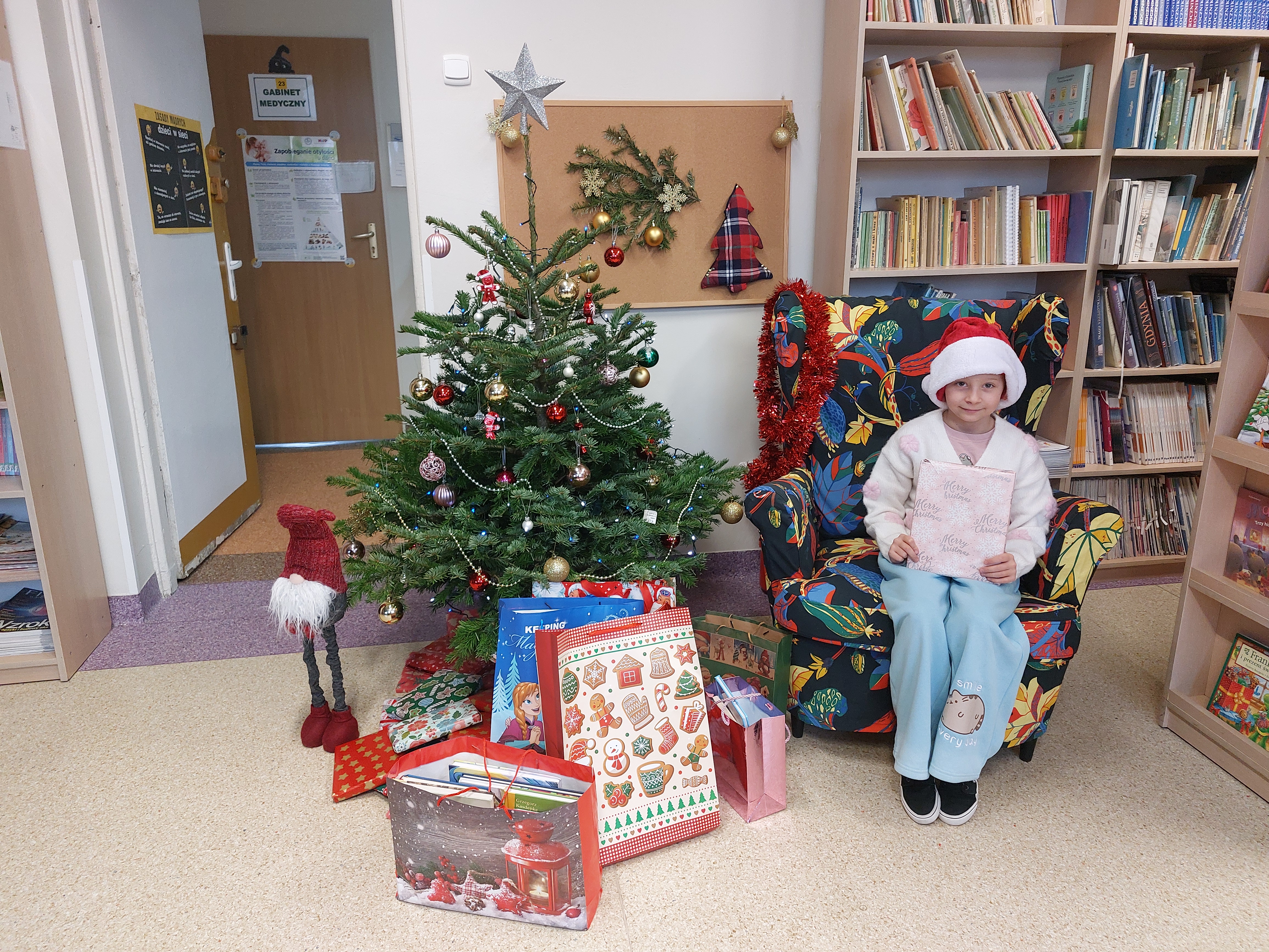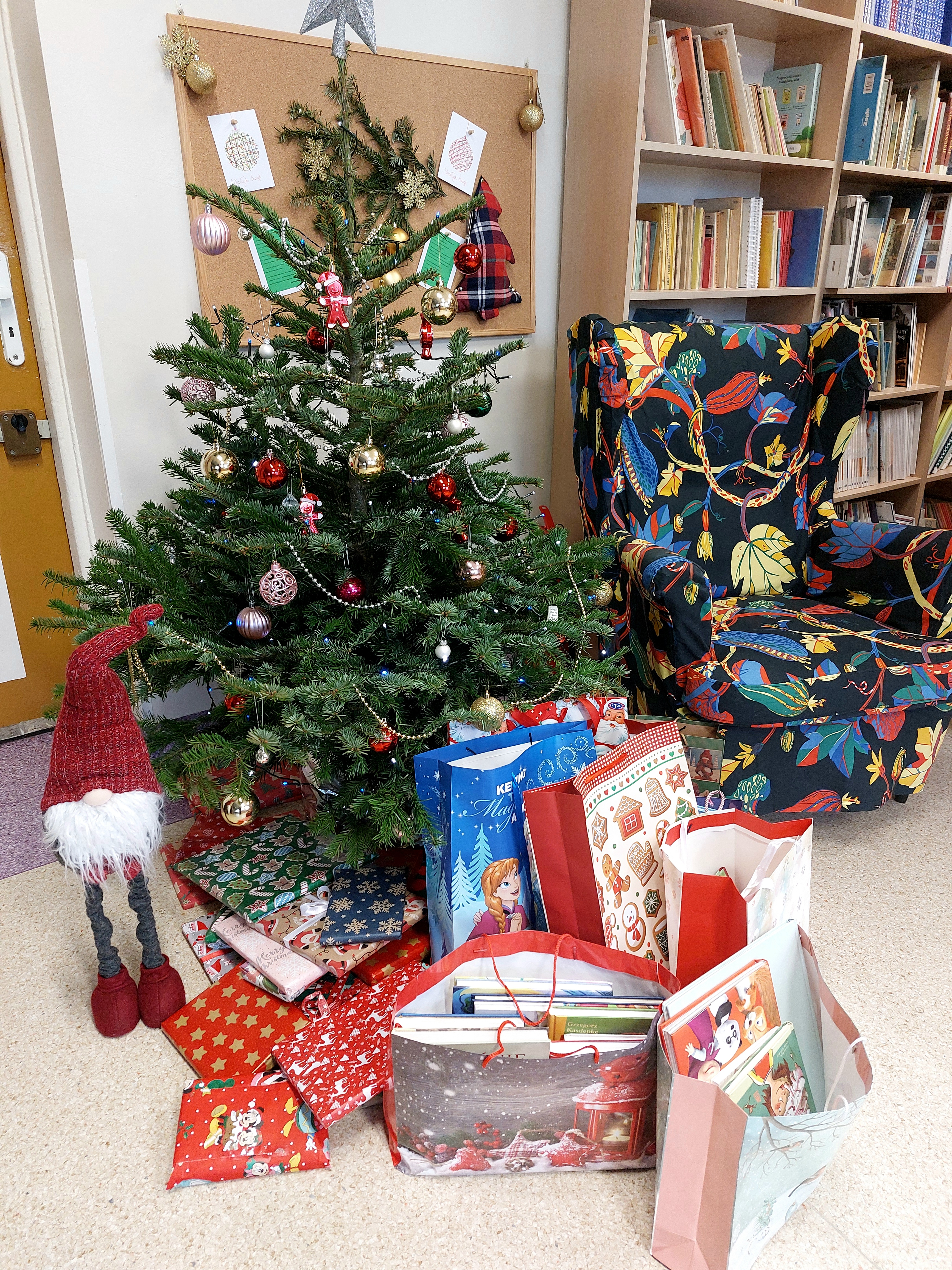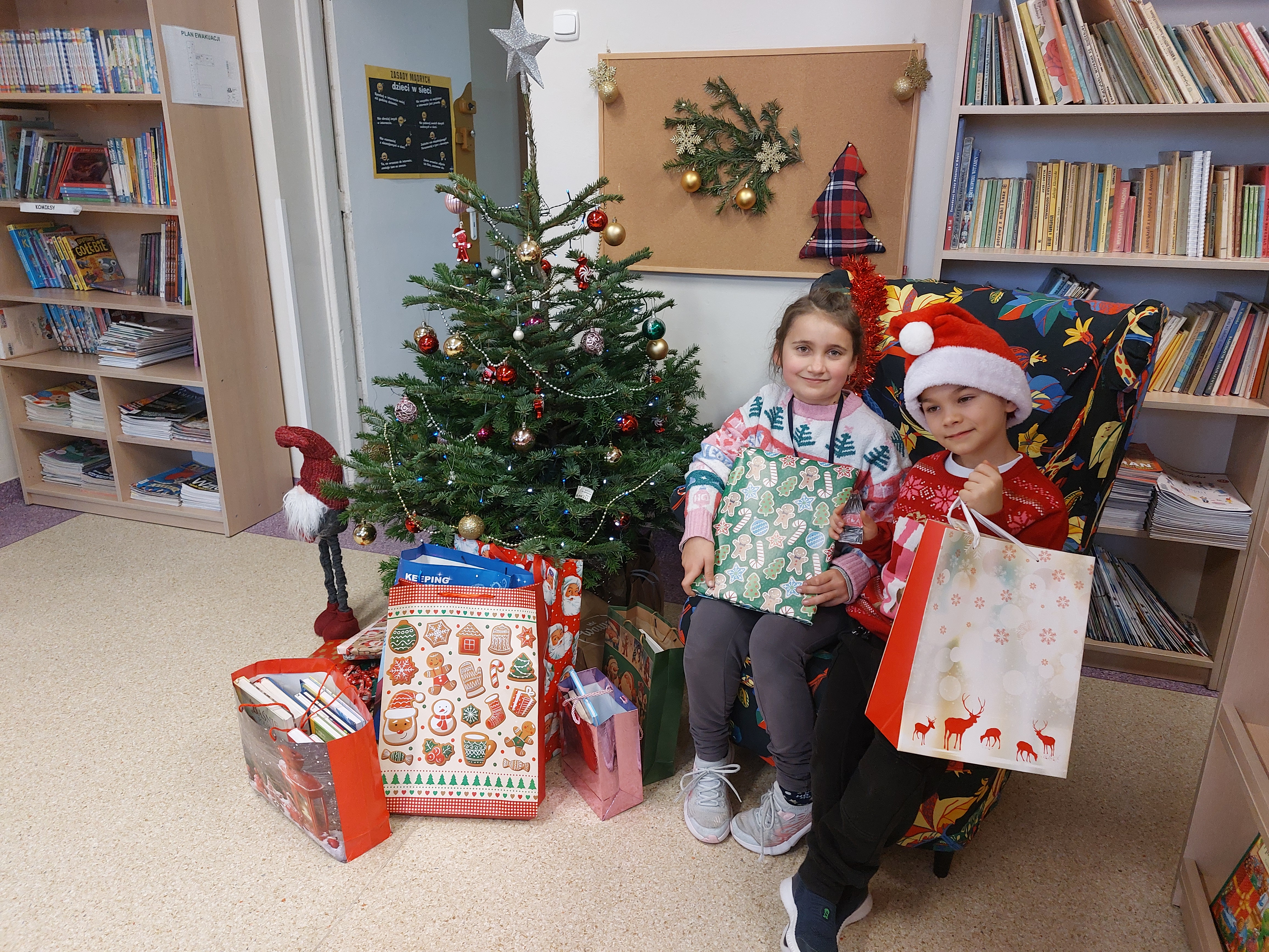 Serdecznie dziękujemy za udział w naszej bibliotecznej akcji: "Zostań Świętym Mikołajem. Podaruj książkę szkolnej bibliotece". To dzięki Wam pod naszą choinką znalazło się mnóstwo prezentów! Obdarowujące dzieci miały możliwość wzięcia udziału w naszej bibliotecznej loterii, w której można było m.in. wygrać voucher: 30 minut programowania na naszych bibliotecznych laptopach. Serdecznie dziękujemy za tak ogromne zaangażowanie. Nasz księgozbiór zdecydowanie się powiększył! Życzymy Wszystkim wymarzonych prezentów mikołajkowych!